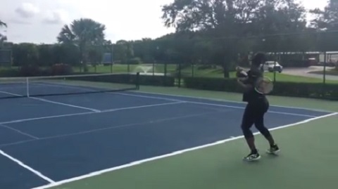 See Heavily Pregnant Serena Williams Playing Tennis (Video).