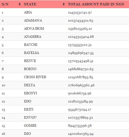 The Nigerian government has released the details of the Paris Club Fund refunds paid to the states to date.