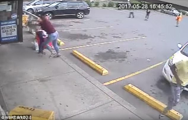The woman, identified as 28-year-old Marlenea Uravage could be seen rushing towards the little girl who was talking to her boyfriend before forcefully pushing her to the ground.
